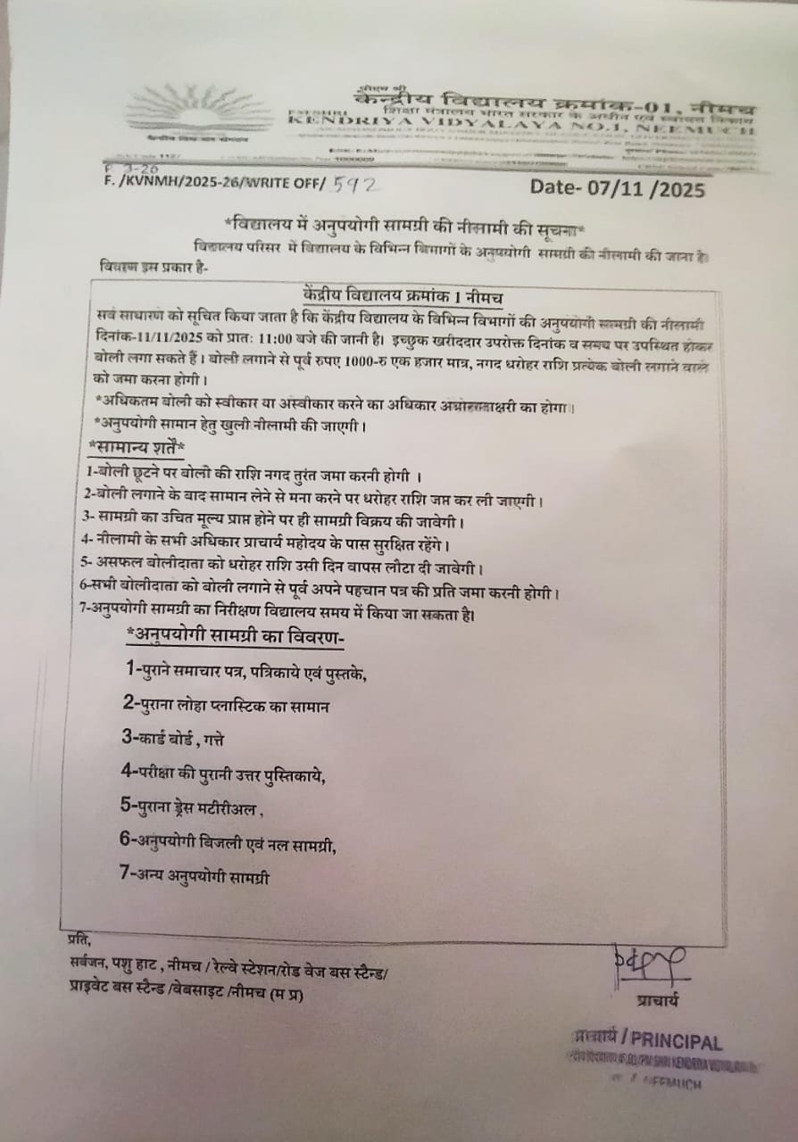 - विद्यालय में अनुपयोगी सामग्री की नीलामी सूचना नई